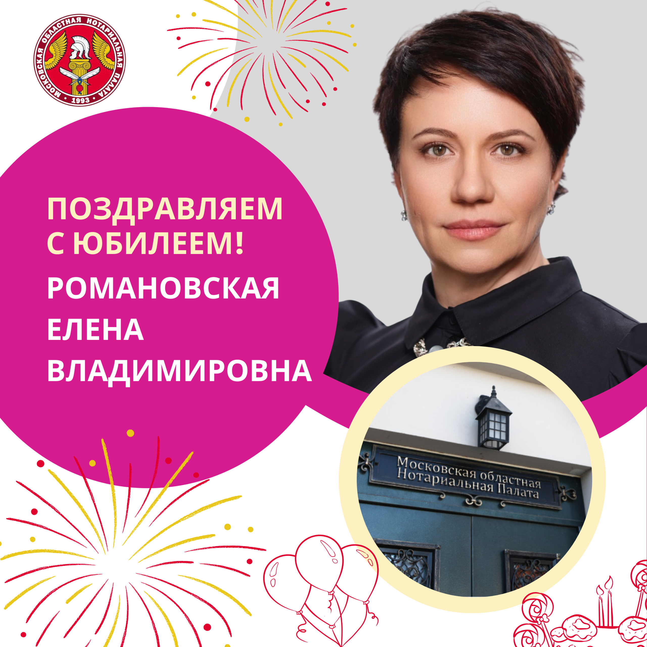 Московская областная Нотариальная Палата поздравляет с Юбилеем Романовскую Елену Владимировну!