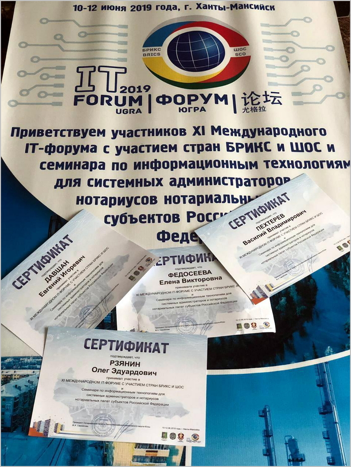 По итогам работы Международной конференции нотариусов и проведенного семинара по информационным технологиям для системных администраторов и нотариусов нотариальных палат субъектов РФ, специалистам и нотариусам МоНП были вручены сертификаты.