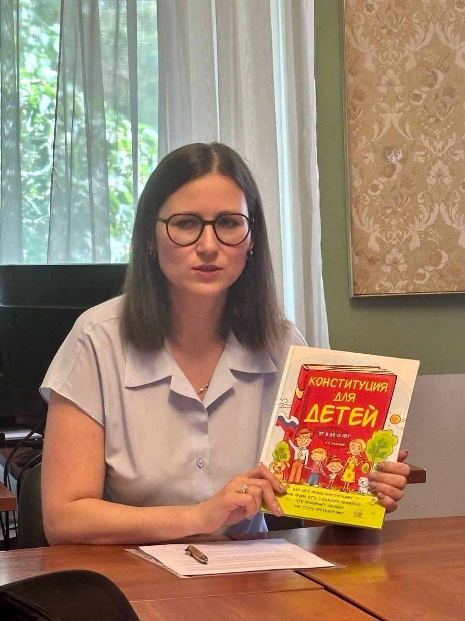 В завершении встречи Пелевина Ирина Андреевна преподнесла учреждению и воспитанникам небольшой подарок в виде основного закона страны – книги «Конституция для детей».