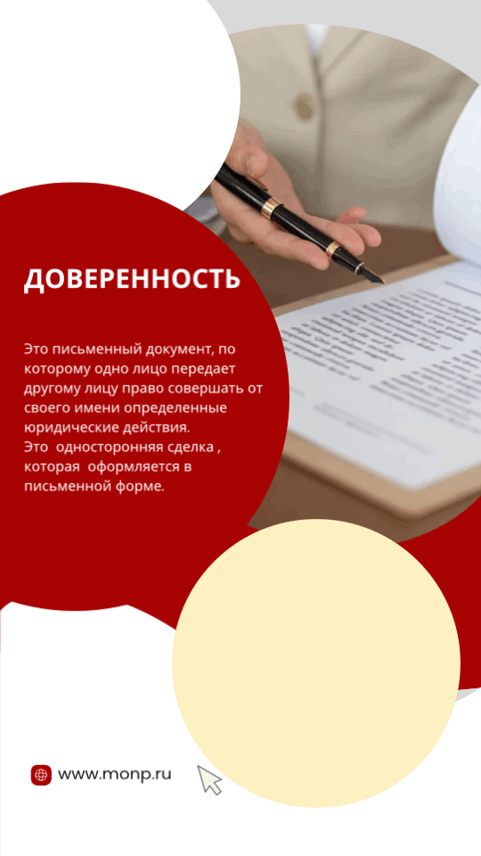 Доверенность — это письменный документ, по которому одно лицо передает другому лицу право совершать от своего имени определенные юридические действия.