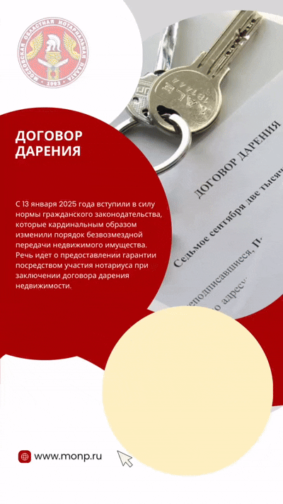 С 13 января 2025 года вступили в силу нормы гражданского законодательства, которые кардинальным образом изменили порядок безвозмездной передачи недвижимого имущества. В связи с увеличением количества рассматриваемых в суде дел о признании договоров дарения недействительными законодателем было принято решение о предоставлении гражданам (в первую очередь речь идет о пожилых людях и малограмотных участниках гражданского оборота) дополнительной гарантии установления твердой воли дарителя подарить имущество, а одаряемого принять его в дар, разъяснения последствий заключаемого договора, а также исключения в данных отношениях факта совершения сделки под влиянием обмана, существенного заблуждения, угрозы, а равно иных оснований, которые могут привести к признанию договора дарения недействительным. Предоставить такие гарантии возможно только посредством участия нотариуса при заключении договора дарения недвижимости, что и было осуществлено законодателем.