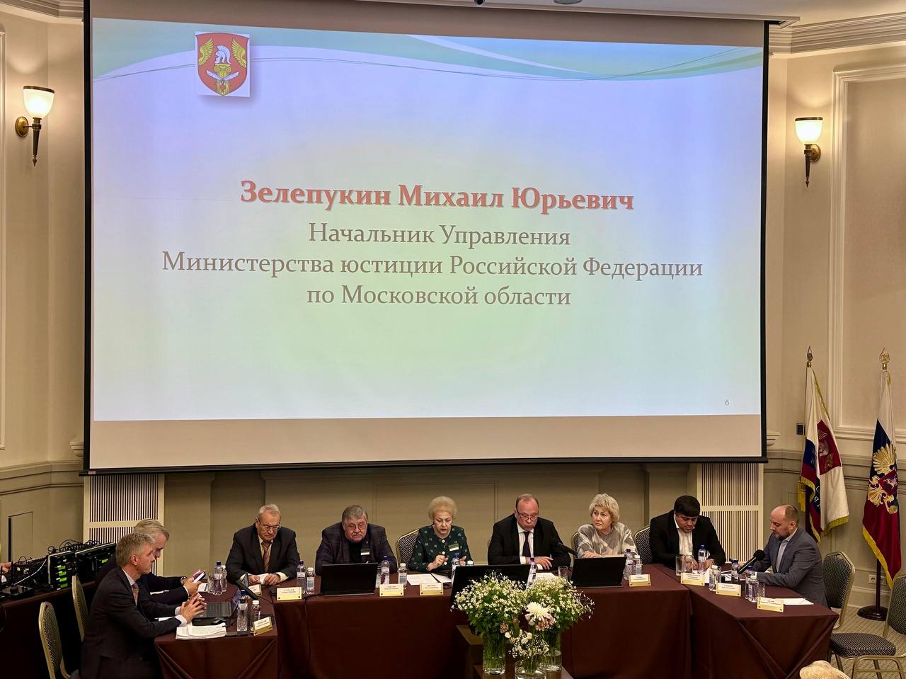 С приветственным словом выступил Зелепукин Михаил Юрьевич, Начальник Управления Министерства юстиции Российской Федерации по Московской области, отметив, что главная цель мероприятия — укрепление глубоких принципов жизни нотариусов. Он напомнил о важности правовой фиксации юридически значимых действий, а также поблагодарил за активную работу членов Московской областной Нотариальной Палаты в социально важной, бесплатной, юридической помощи, в том числе за поддержку участников СВО и членов их семей. В заключение Михаил Юрьевич пожелал всем результативной работы, профессионального роста и успеха.