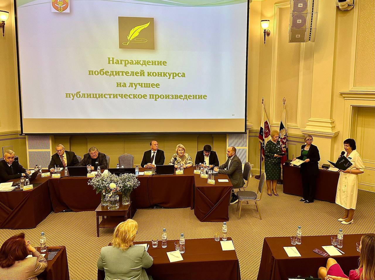 После вступительных слов присутствующих прошло награждение победителей конкурса на лучшее публицистическое произведение с вручением памятных призов и подарков.