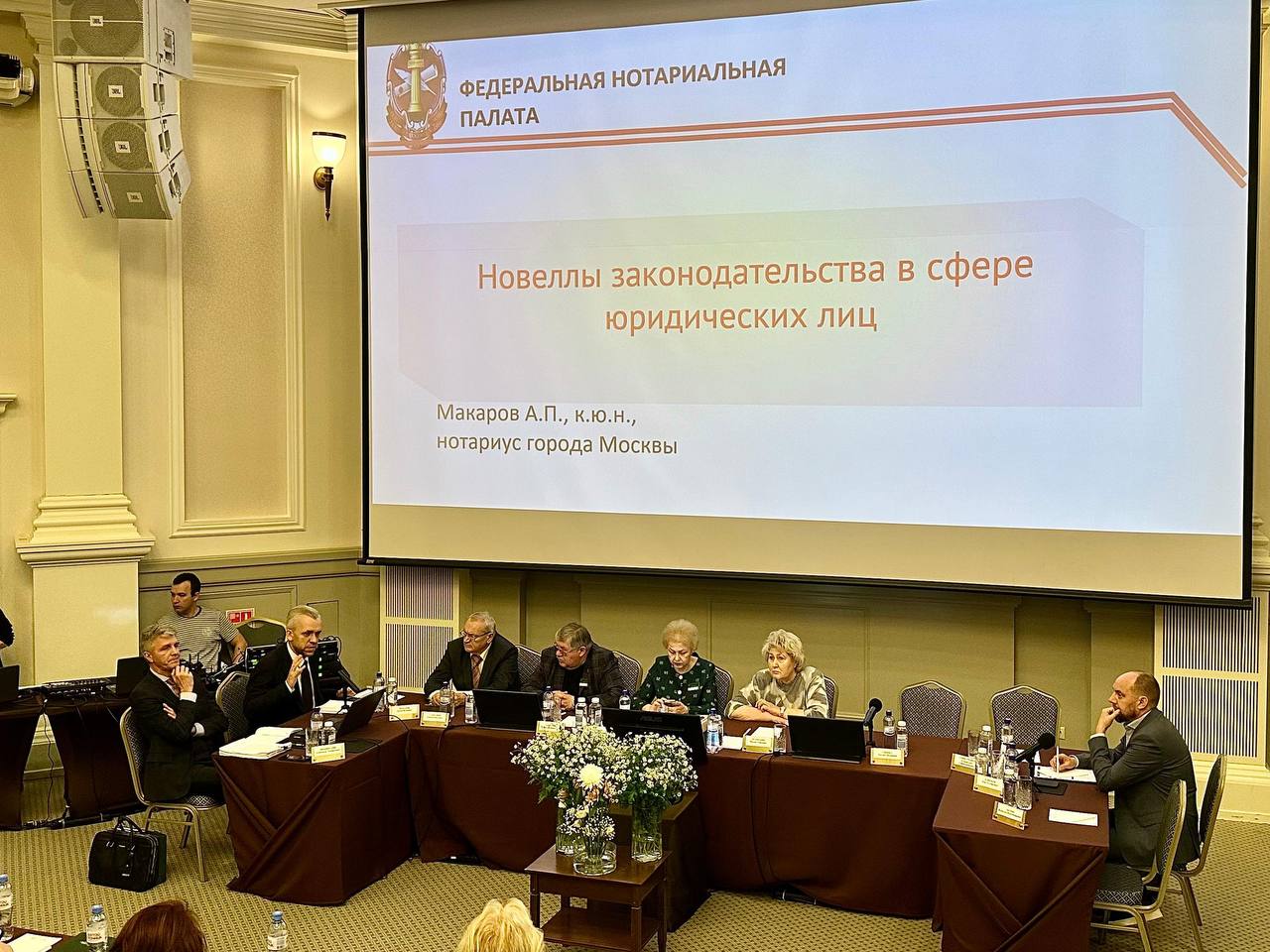 Макаров Антон Петрович, нотариус города Москвы, заместитель Председателя Комиссии по методической работе и изучению практики применения законодательства в сфере нотариата, кандидат юридических наук выступил с презентацией и докладом на тему: «Новеллы законодательства в сфере юридических лиц».