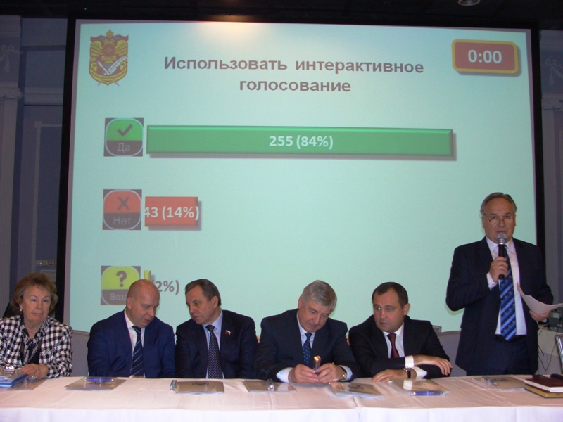Интересно, что на собрании впервые была применена система интерактивного электронного голосования. Участники собрания, имеющие право решающего голоса, по вопросам, не требующим тайного голосования, голосовали при помощи электронных пультов, а итоги голосования были видны сразу после окончания голосования на большом экране. Так, с помощью электронной системы, была избрана Ревизионная комиссия палаты в составе 5 человек.