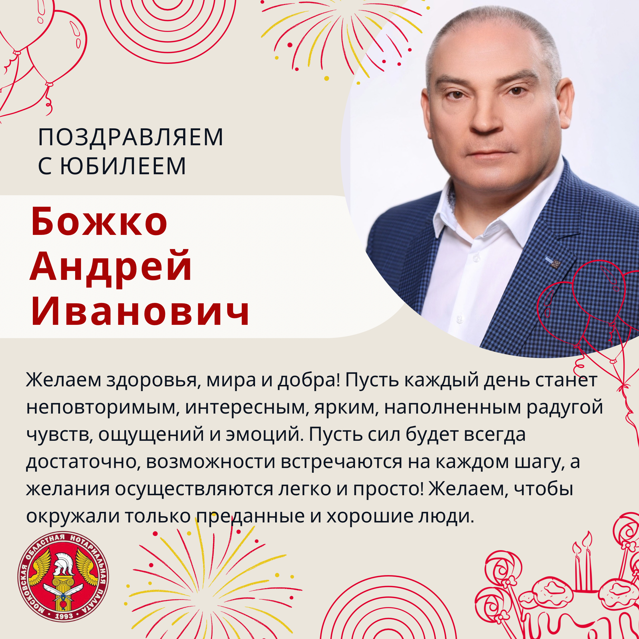 Я, Божко Андрей Иванович, нотариус Одинцовского нотариального округа Московской области, стажировку проходил у Куюмжи Нины Петровны, нотариуса Одинцовского нотариального округа Московской области. Лицензию на право нотариальной деятельности получил в Главном управлении Министерства юстиции Российской Федерации по Московской области. Был назначен на должность нотариуса, занимающегося частной практикой, с определением нотариального округа — посёлок Уваровка Можайского района Московской области.
