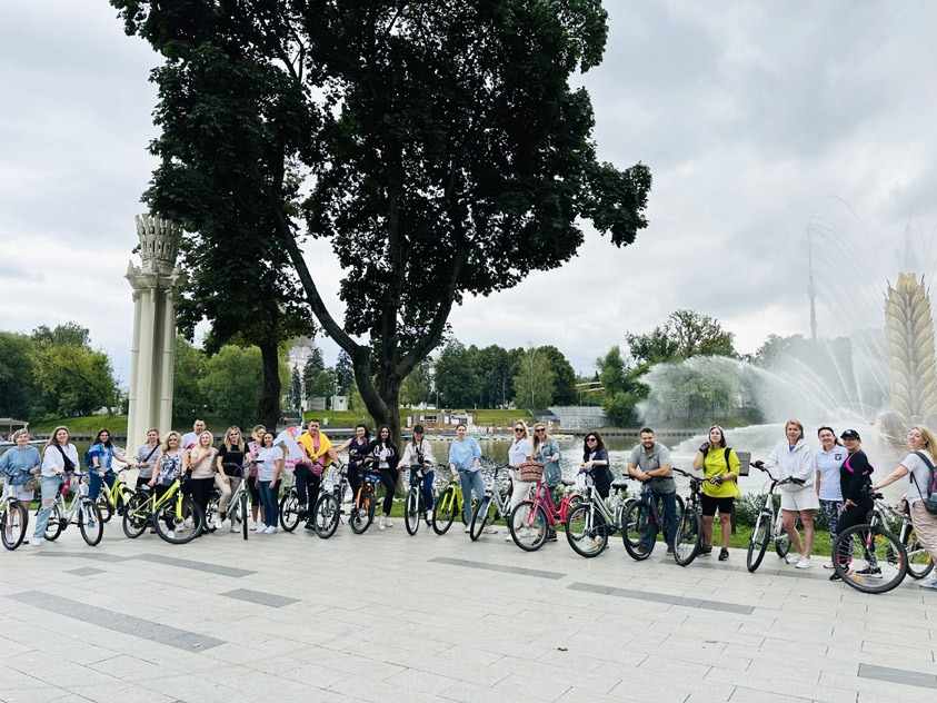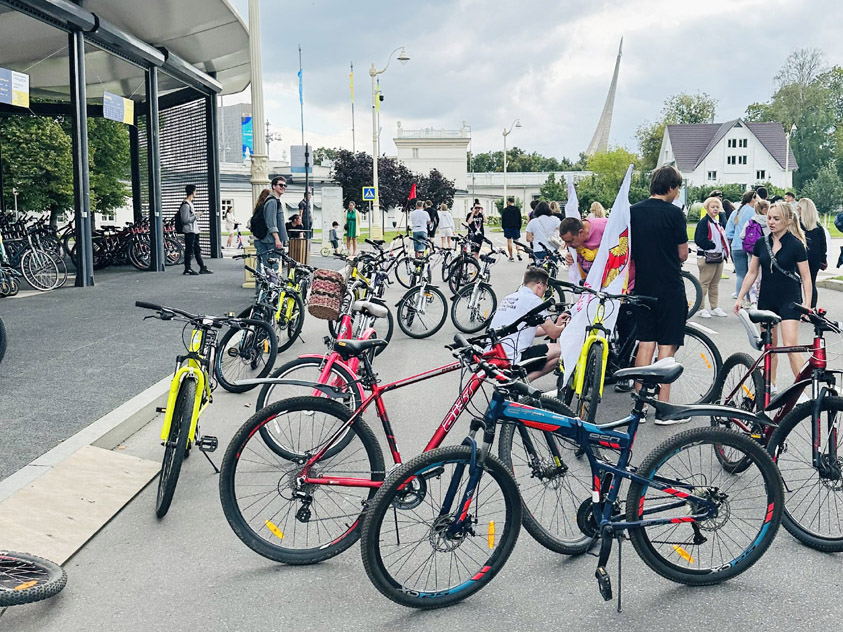 Велопробег прошел по аллеям ВДНХ, Главного Ботанического сада и завершился посещением Музея Кино. Участники смогли ознакомиться с постоянной экспозицией, узнать об истории и теории киноискусства.