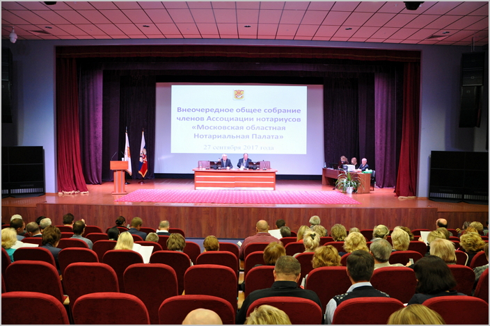 27 сентября 2017 года в Молодёжном культурно-досуговом центре города Реутов состоялось Внеочередное Общее собрание членов Ассоциации нотариусов «Московская областная Нотариальная Палата».