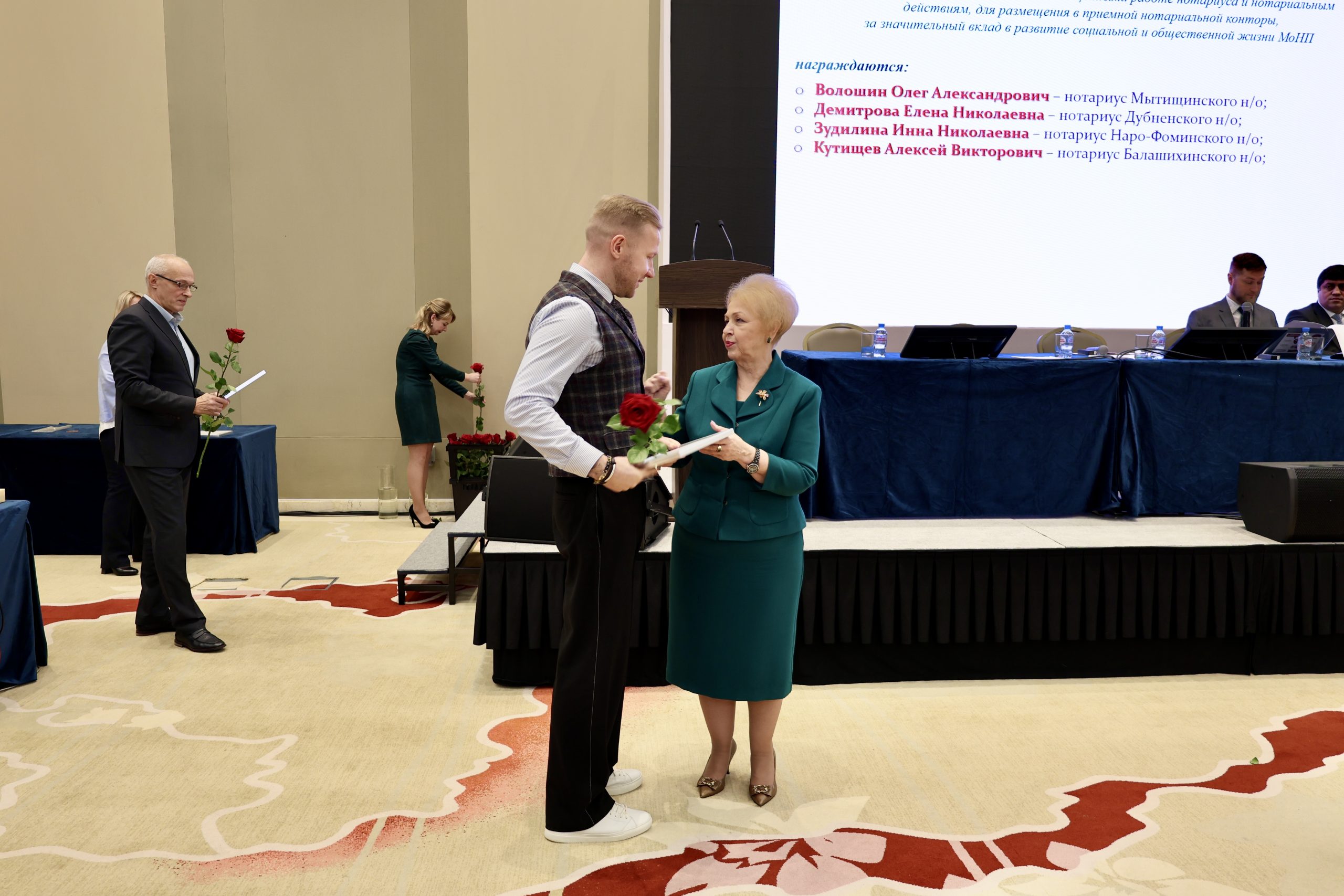 В завершение собрания Президент МоНП Лобачева Наталья Ивановна наградила нотариусов, активно участвующих в общественной деятельности, почётными грамотами и ценными подарками.