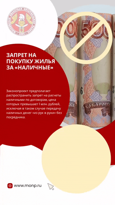 ⁃ запрет наличных расчетов при покупке недвижимости;